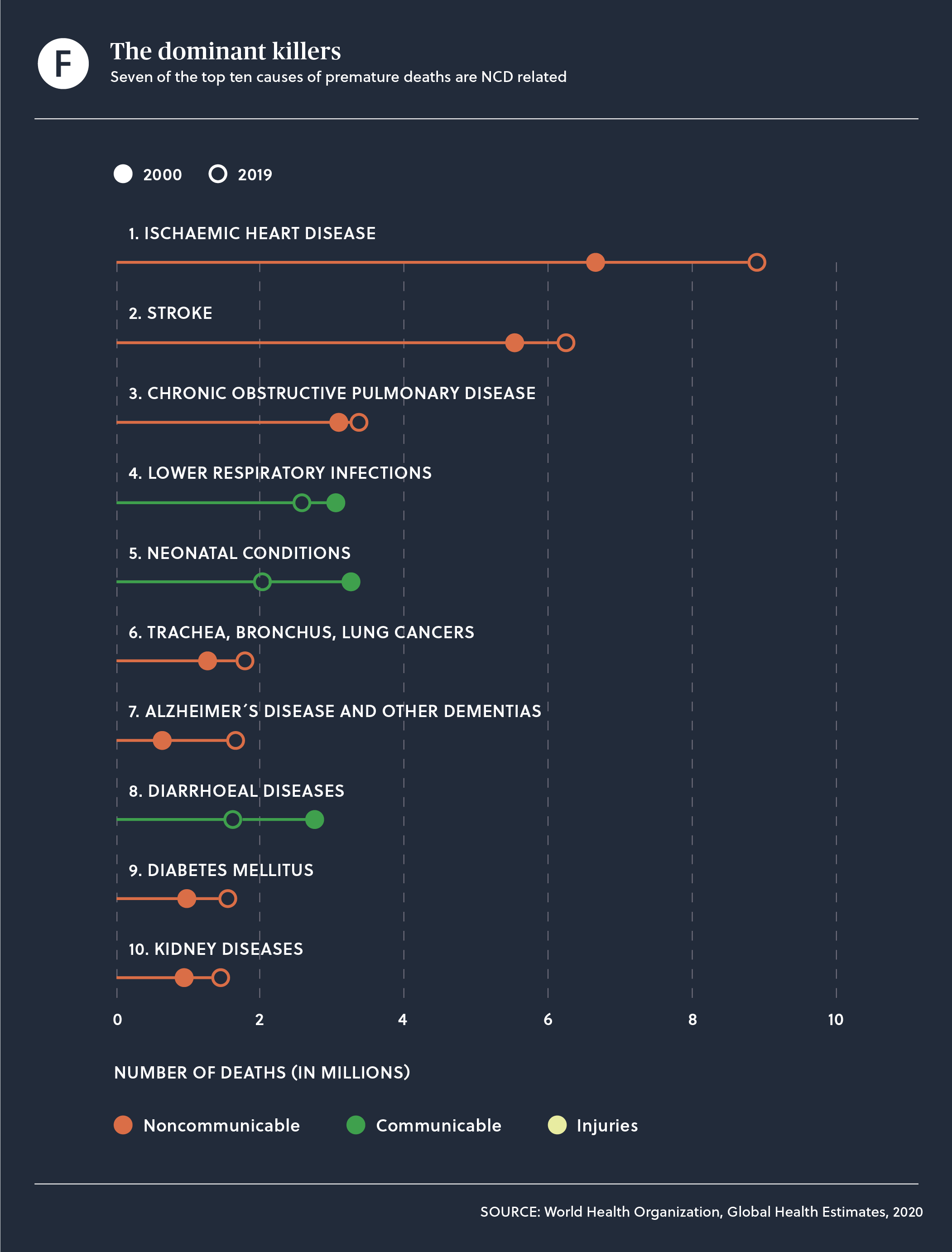 The novel coronavirus 2019 (COVID-19) pandemic has exacerbated deep inequalities in our societies and highlighted the need to invest smarter to address the health care needs of people living with noncommunicable diseases (NCDs) – including cancer, cardiovascular disease, chronic respiratory disease, diabetes, and associated mental health conditions – and other chronic illnesses. From country to country, we need to make a massive effort to increase investments in prevention, screening, early diagnosis and appropriate treatment of these diseases, which today cause more than 70% of global deaths and are seven of the ten leading cause of deaths according to the newly published WHO Global Health estimates.